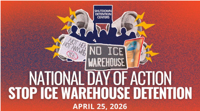 Apr 25 Communities Not Cages: National Day of Action to Stop ICE Warehouse Detention — Burlington 12:00 pm - 1:30 pm Burlington ICE Enforcement & Removal Operations Office 1000 District Avenue, Burlington Event Details Get Directions