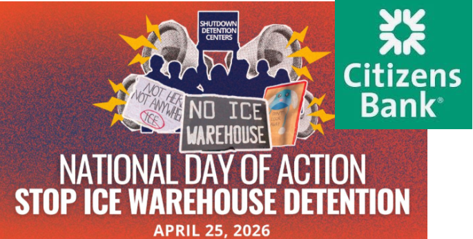 Apr 25 Stop Citizens Bank From Financing Private ICE Prisons 11:00 am - 12:00 pm Citizens Bank- Medford Square 1 Riverside Ave, Medford Event Details Get Directions