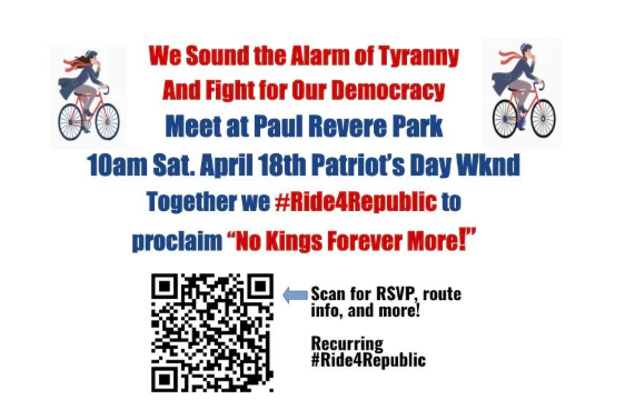 Apr 18 Ride for Our Republic 10:00 am - 1:00 pm Boston to Lexington Massachusetts Event Details Get Directions
